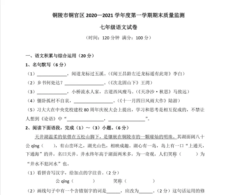 6安徽省合肥市包河区2020-2021学年上学期期末考试七年级英语试题卷.pdf