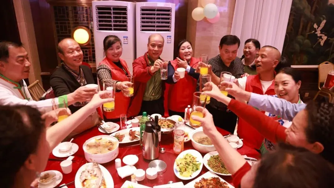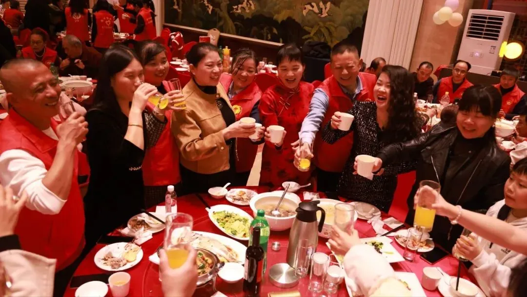 美酒斟满,情谊绵长。全体人员起立举杯,三句敬酒词道出心声:敬祖国国泰民安,敬志愿者初心不改,敬未来温暖同行。胡会长也展望2026年,计划拓展服务领域、创新活动形式、提高服务质量,与大家携手共创辉煌。