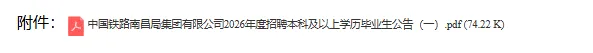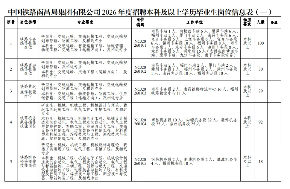 登录中国铁路人才招聘网进行报名,申请岗位时选择“中国铁路南昌局集团有限公司2026年度招聘本科及以上学历毕业生公