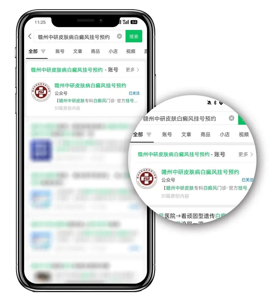 “赣州中研白癜风医院挂号”公众平台回复关键词,如:白癜风、皮肤白斑、白点等白癜风疾病词,可获得相关科普介绍!