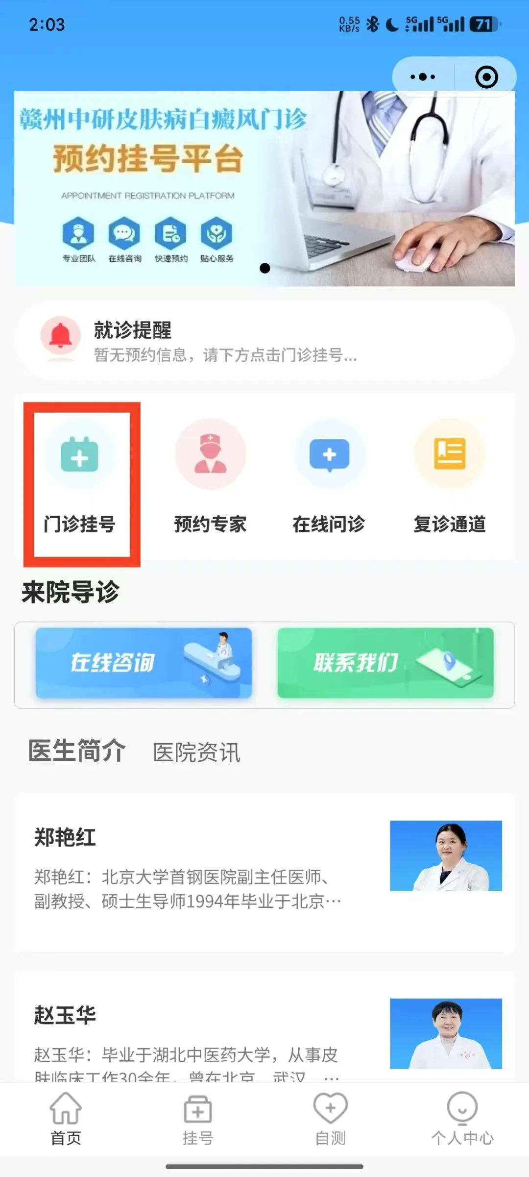 点击下方“咨询挂号”进入挂号程序