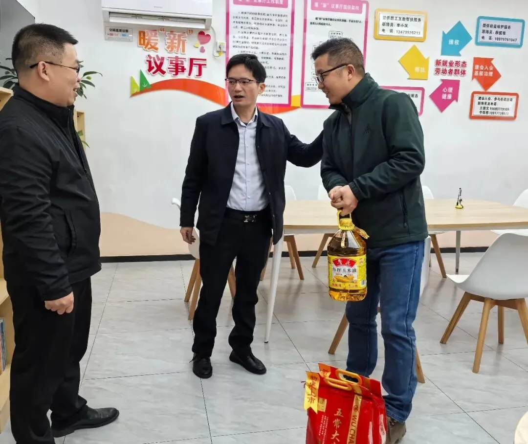 本次走访慰问活动分为集中慰问和上门走访相结合的方式进行。在五一广场工会驿站开展了集中慰问,高炳金向劳模、困难职工和重点群体职工代表送上米、油等慰问物资和慰问金,向他们致以节日的问候和崇高的敬意。