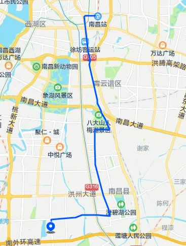 3、停靠站点:小蓝公交总站、金沙大道富山大道口、富山大道金沙大道口、小蓝经开区管委会、富山大道金沙一路口、玉岸村、富山大道东口、柏岗地铁站、省送变电公司、莲塘二中、莲西路斗柏路口、莲塘三小东、莲西农贸市场、莲西路洪州大道口、莲塘一中西门、莲西路小蓝北路口、莲西路复兴大道口、莲西路开发路口、莲西路北口、花博路西口、花博园南门、青云谱南路南口、青云谱南路个山路口、八大山人梅湖景区东、青云谱南路北口、青云谱北路南段、青云谱北路江铃东二路口、青云谱北路江铃东一路口、三店西路立交、公安直属分局、江铃立交、新溪桥、徐坊客运站、坛子口立交南、老福山南、火车站;