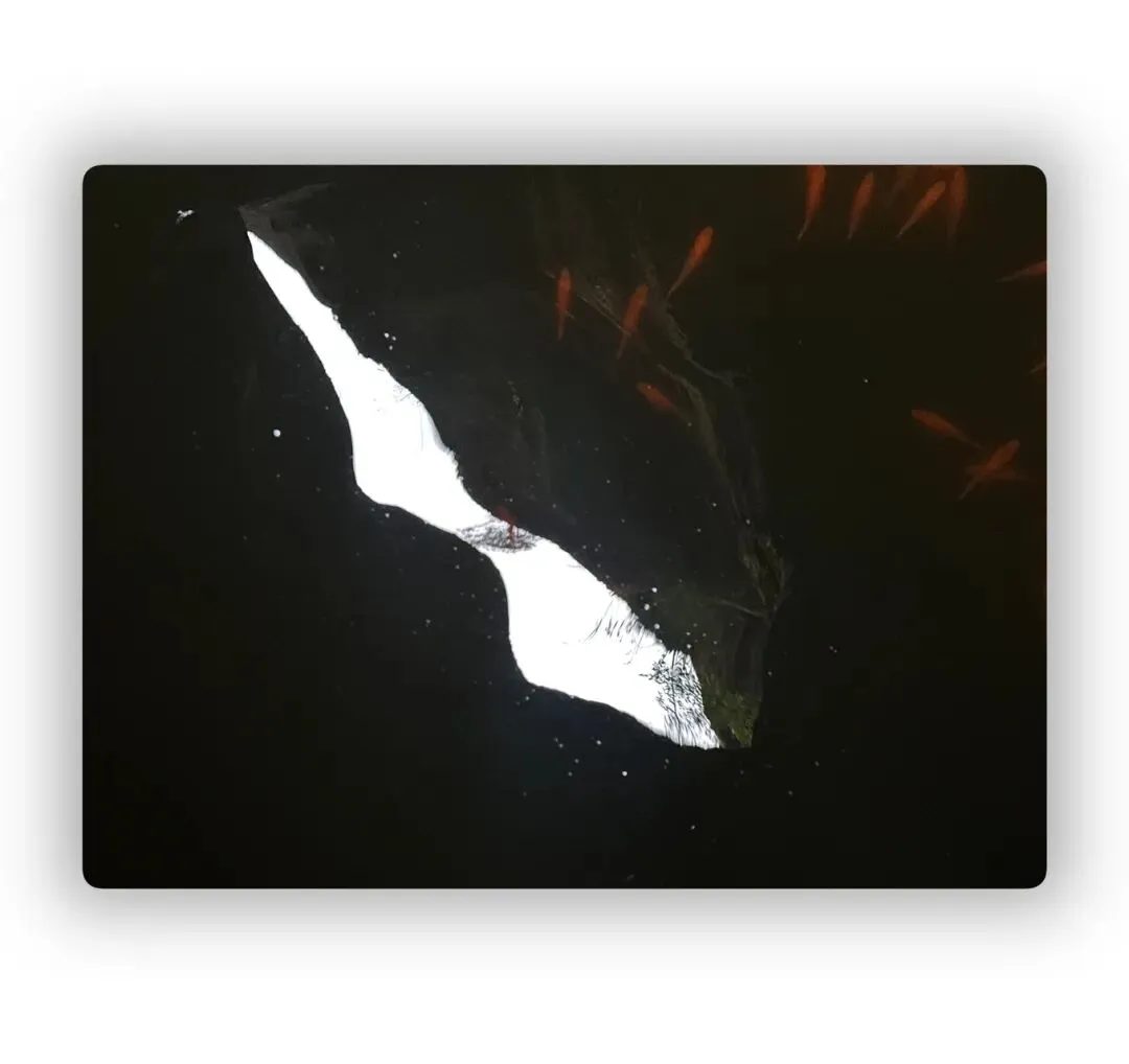 眼望水潭之中,一轮弯月清晰地在黝黑水中,透亮明朗。弯月之中能看到一棵冠状的树木,就这么清晰地映在水底。
