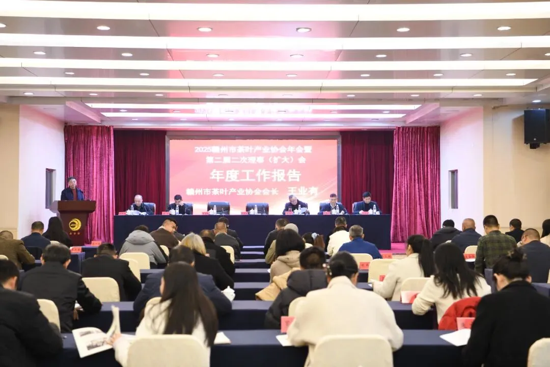 茶香沁心脾,同心话发展。1月16日上午,2025赣州市茶叶产业协会年会暨第二届二次理事(扩大)会议在赣南宾馆隆重召开。本次会议以“唱响品牌兴产业 搭建平台促发展”为主题,全面总结2025年工作成效,系统部署2026年“十五五”开局之年重点任务,凝聚多方合力,为赣南高山茶高质量发展擘画新蓝图。