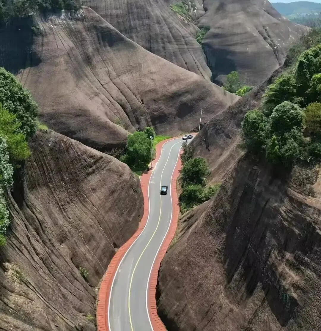 【马皇丘】,这里是最美丹霞公路之一,且不输高椅岭的景点。峡谷内沟壑纵横,石壁巨屏林立,处处皆是丹霞地貌的特色,进入峡谷后段,则满眼都是翠竹掩映,树藤缠绕!