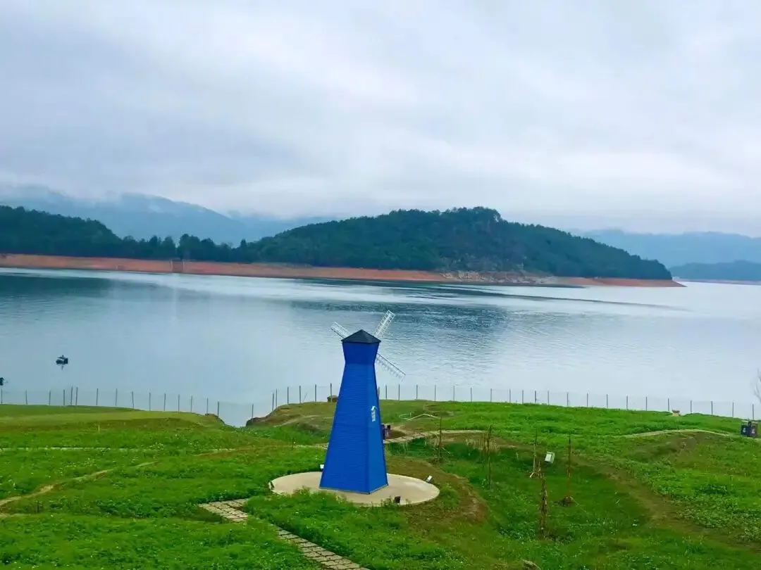 东江大坝是一座具有重要意义的水坝,据说是我国自行设计,自行建造的第一座双曲薄壳拱坝,1958年开建,中间停建,一直到1992年才全面建成。大坝气势恢弘,大气磅礴,从坝上俯瞰整个湖面,碧波荡漾,美不胜收。