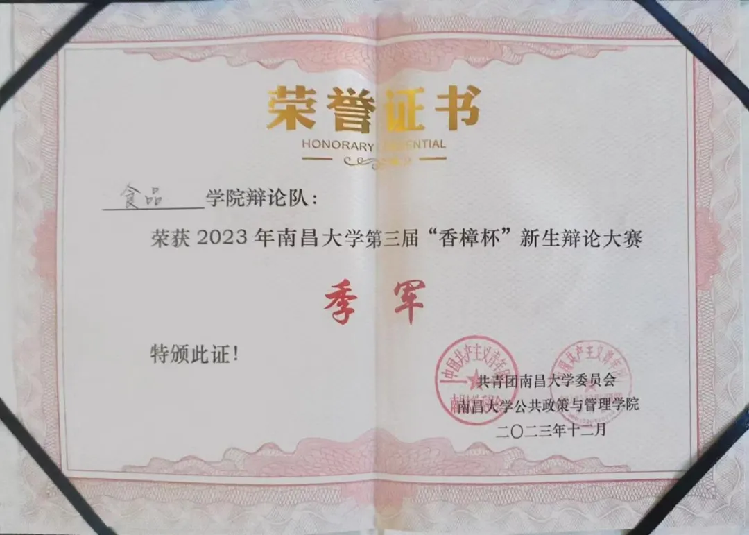 喜报|食品学院辩论队获得南昌大学第三届“香樟杯”新生辩论赛季军