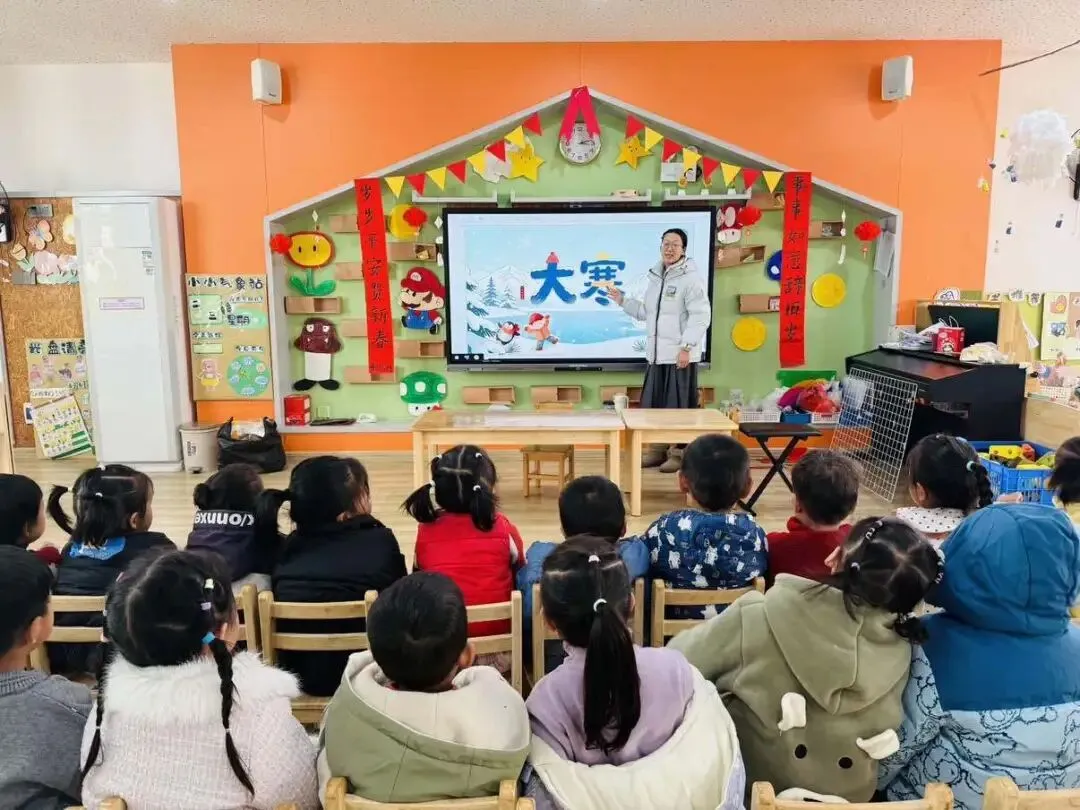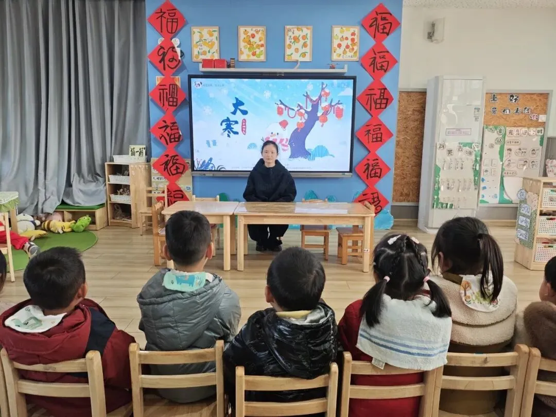 大寒临冬,年意渐浓。为传承节气与年俗文化,各班以绘本、动画、民俗视频等形式开展主题教育,讲解大寒由来、气候物候及贴福字、煮腊八粥等迎年习俗。幼儿观察户外结冰、结霜景象,分享家中备年趣事,在趣味认知中点燃对传统年俗的兴趣与新年期待。
