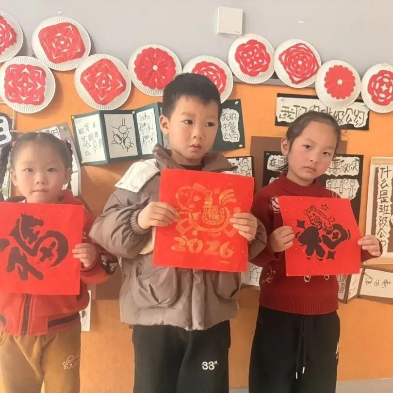 指尖凝趣迎大寒,匠心传承贺新春。小班组萌娃用多彩黏土制作 "暖心腊八粥",体验节气饮食习俗;中班组幼儿巧手剪制装饰 "福" 字,贴满门窗营造迎福氛围;大班组孩子发挥想象创作 "年兽" 作品,手持道具互送新春祝福。此次活动以手工为媒,将大寒习俗、年俗文化与动手能力培养深度融合,让幼儿在沉浸式体验中传承文化、喜迎新年,为 "小树人" 的成长注入传统文化养分。