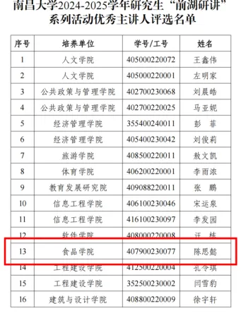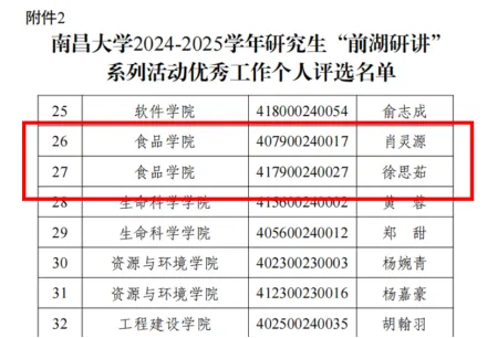 喜报!南昌大学“前湖研讲”系列活动荣誉揭晓: 食品学院陈思懿、肖灵源、徐思茹三人获表彰