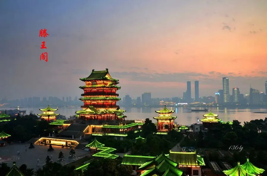 滕王阁,为南昌市地标性建筑、豫章古文明之象征,矗立赣江江畔,与秋水共长天一色。