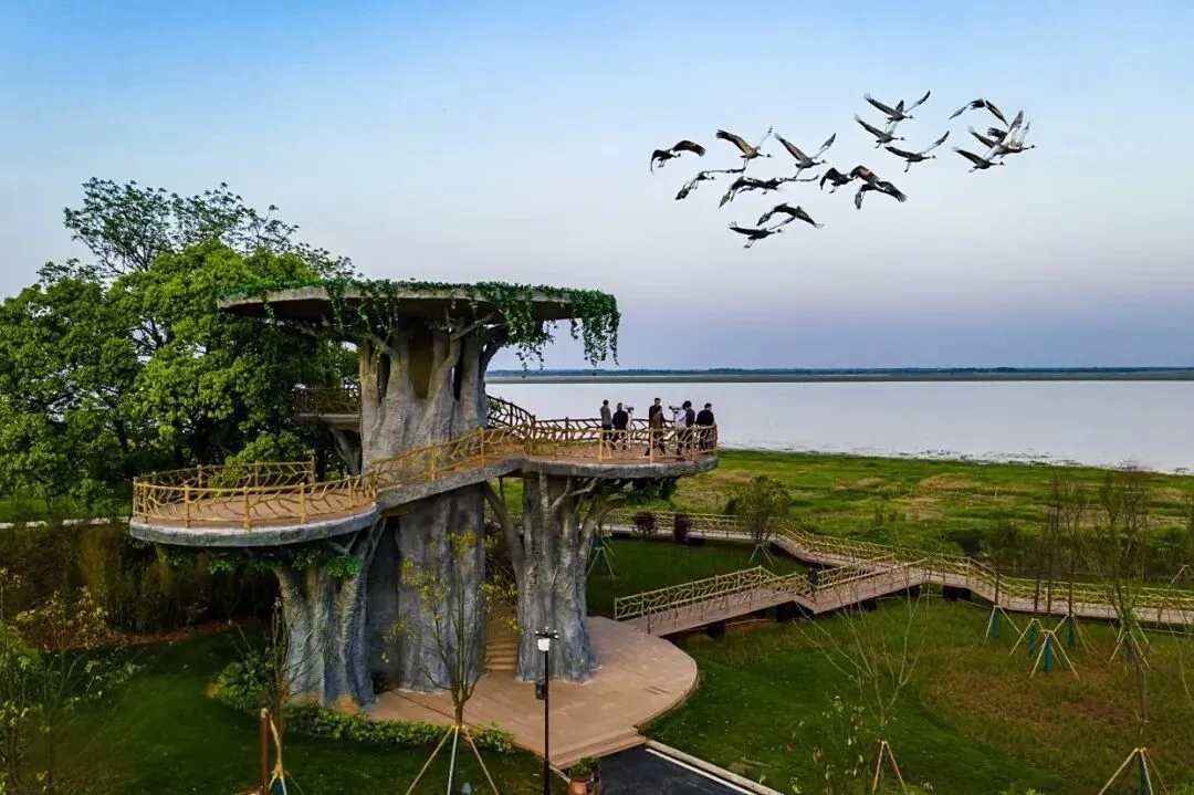 该区域拥有近2万公顷湿地,每年吸引白鹤、东方白鹳等60余万只候鸟越冬,设有大湖池、常湖池等仿生态观鸟平台及鄱阳湖国际湿地候鸟馆。