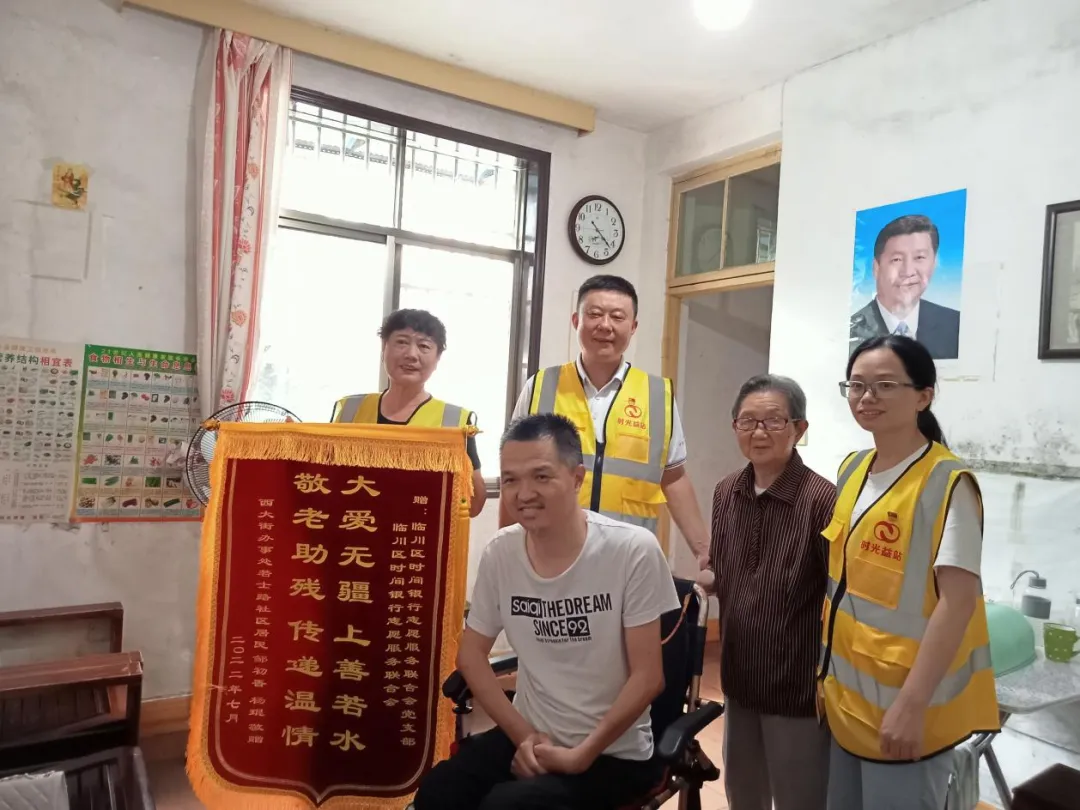 时光益站联合会成立3年,志愿者们苦过、累过、委屈过,但每当看到老人满意微笑时,志愿者们总会想,有一天自己也会老,等自己老的时候有人来照顾我,那是多么幸福的一件事情! 锦旗上“大爱无疆 上善若水 敬老助残 传递温情”是对工作最大的认可,也是对组织最美的赞誉。