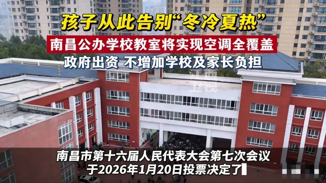 南昌教育民生重磅升级!市十六届人大七次会议敲定:2026年全市公办学校教室将实现空调全覆盖,政府全额出资,不增加学校和家长任何负担。