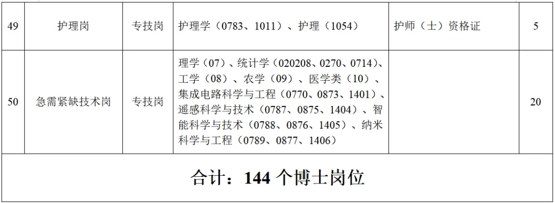 杰出人才、领军人才、学科方向带头人、学科优秀人才等高层次人才招聘人数不限;博士等招聘计划共144名,具体招聘岗位及要求详见《南昌大学第一附属医院(江西省呼吸医学中心)2026年高层次人才招聘岗位表》(附件1)
