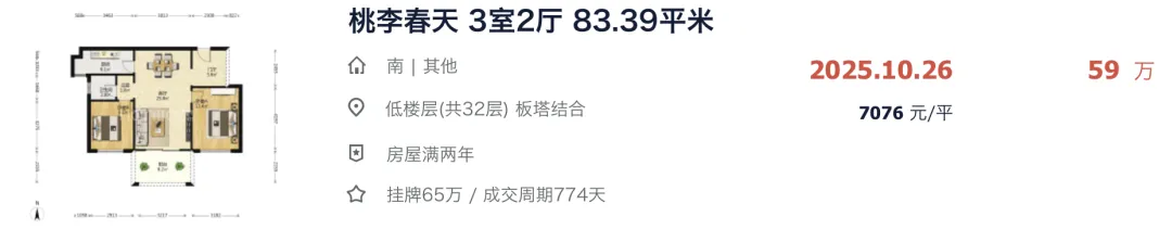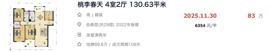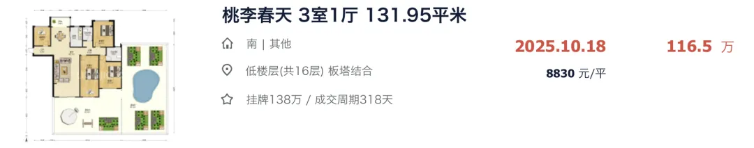 就在去年 12 月中旬,桃李春天新成交一套房源,成交价创下小区历史新低。