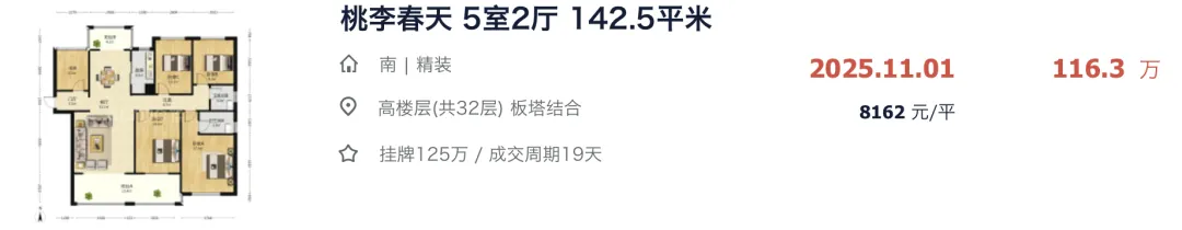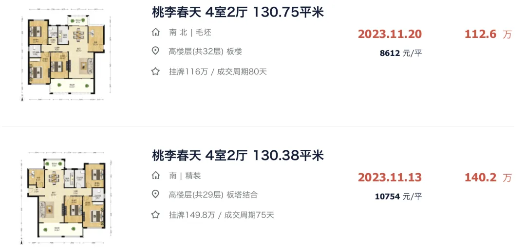 ▲ 2个月内桃李春天二手房连卖5套,不同楼层不同交付状态,价格差距蛮大