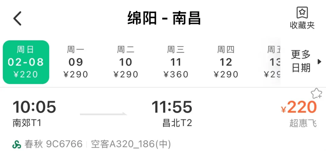 9C6766 绵阳10:05-11:55南昌