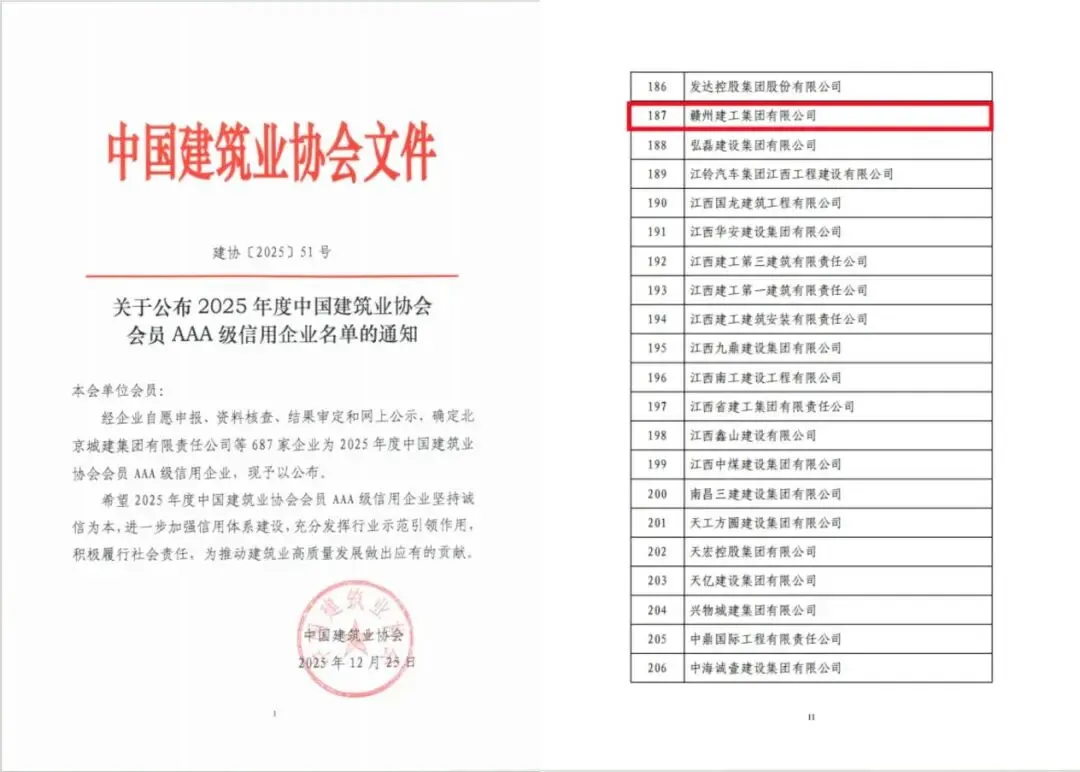 展望2026年,赣州建工集团将以精耕细作稳守核心区域,以提质增效完善服务体系,以苦练内功锤炼施工本领,以过硬品质巩固市场份额,以创新赋能激活发展动能,以优质履约擦亮企业品牌,奋力书写集团市场化转型高质量发展的崭新篇章。