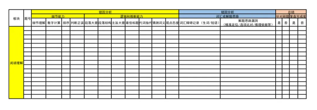 最后几天复习阅读,不要再盲目刷新题,而是先做数据统计,精准定位自己的丢分题型,拿出近期的模拟卷,看看自己是细节理解题、推理判断题、主旨大意题还是任务型阅读出错,针对丢分题型专项突破,