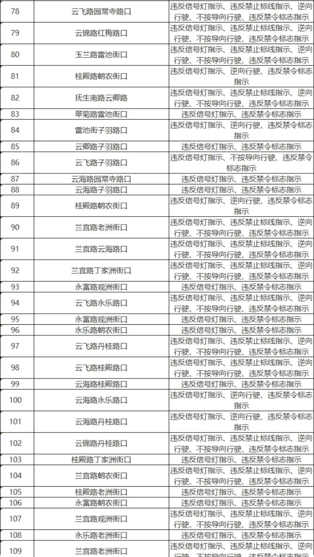 朝阳新城,这次涉及主要是违法信号灯指示、违反禁止标线指示、逆向行驶、不按导向行驶、违反禁令标志指示。