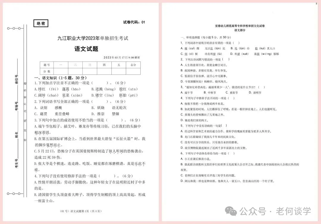 ✎江西单招样卷模拟卷