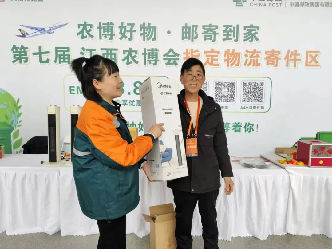 展会期间,南昌邮政在展馆核心区域精心布局专属物流服务站点,构建“现场揽收、即时打包、快速寄递”的一站式服务体系,同步开展多样化现场邮寄活动,精准破解参展商户寄递不便、市民游客携带展品吃力的痛点,高标准服务体验得到了商户和群众的一致好评,日均揽收量达80件。值得一提的是,南昌邮政的专业寄递服务已纳入农博会官方宣传片拍摄环节。