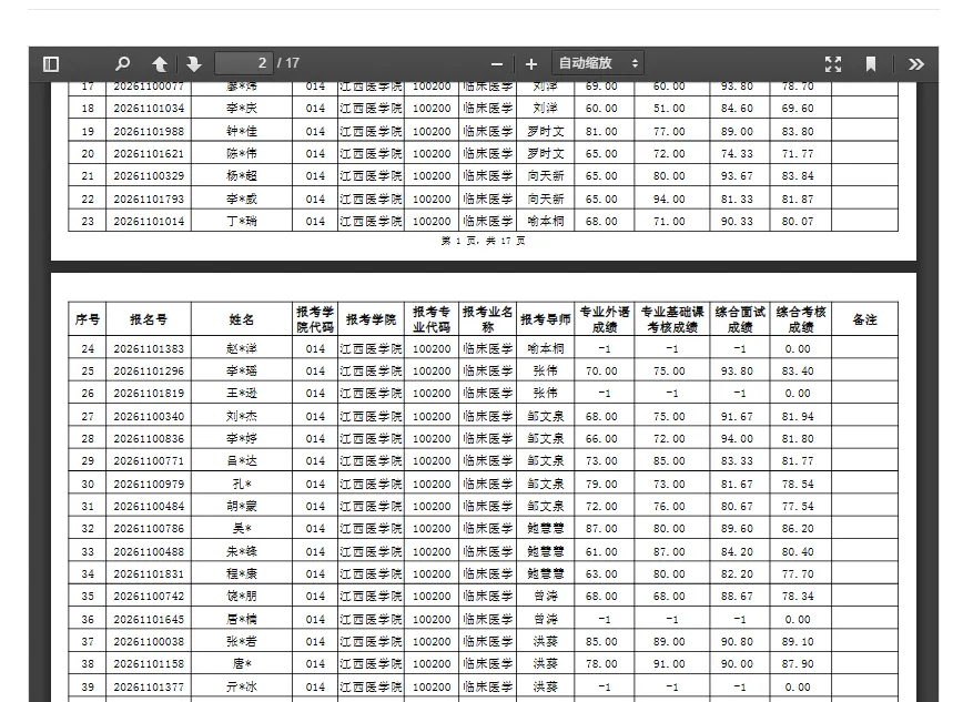 >招生 | 2026年南昌大学江西医学院临床医学博士研究生(普通招考) 综合考核成绩公示(第一批)