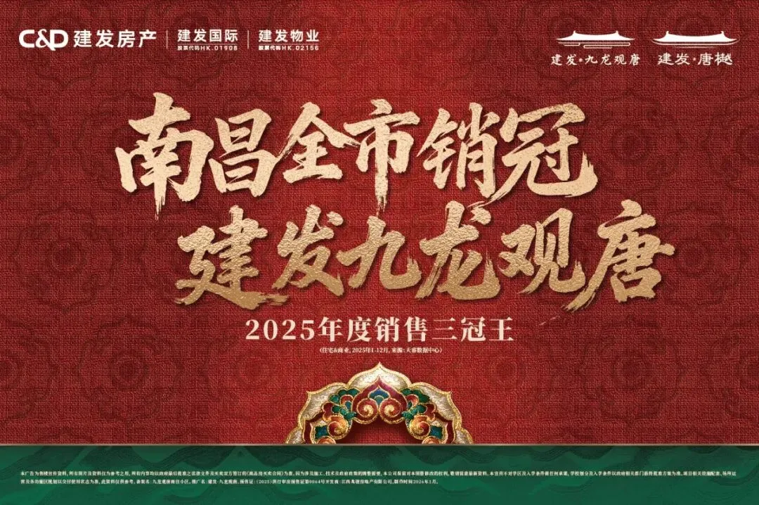 从2024年的全城热捧,到2025年的荣耀卫冕,建发九龙观唐以南昌住宅&商业销售套数、面积、金额TOP1的硬核战绩,再获全年全市销冠。这座持续引爆市场的唐风大城,究竟凭何成为万千家庭的置业首选?(住宅&商业,2025年1-12月,来源:江西易居研究中心、天睿数据中心)