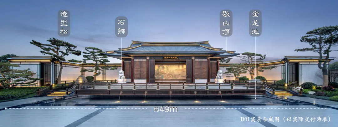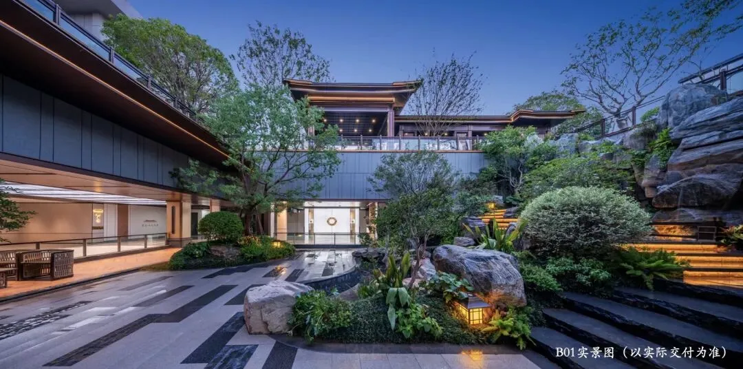 TOD约4500㎡唐风示范区实景绽放,仿佛穿越千年的美学盛宴。约360㎡中庭水景、戏水池、下沉庭院等实景呈现,云亭松翠、曲水流觞、烟波飞虹……每一步都是行走的山水画卷。