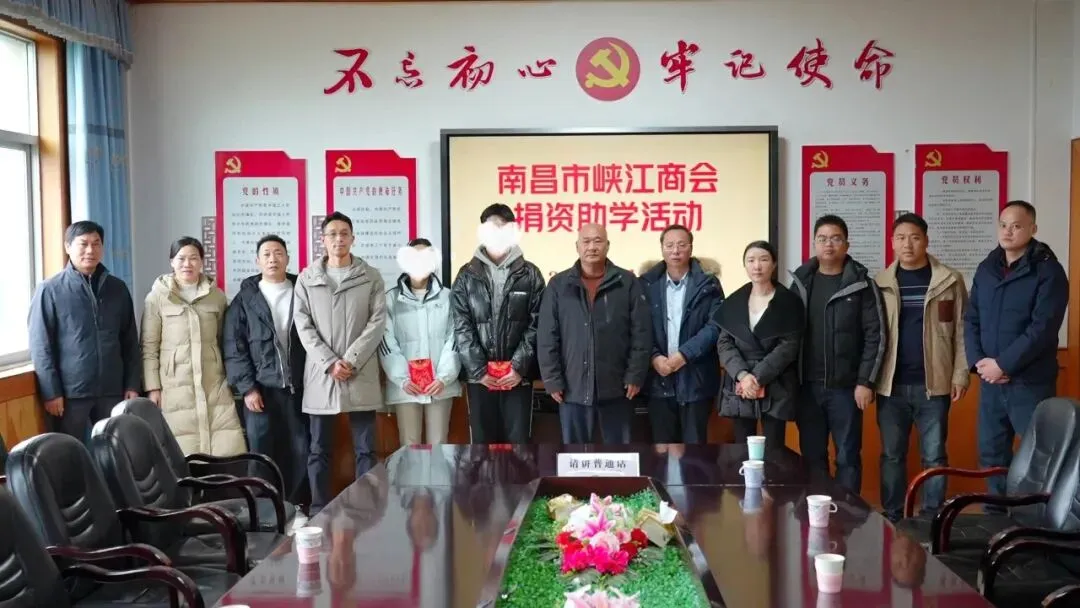 在峡江中学,商会为两名困难学生捐赠助学金4000元,并详细了解他们的家庭生活状况与实际困难,鼓励他们保持坚韧向上的心态,好好学习,用奋斗书写未来。