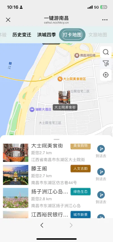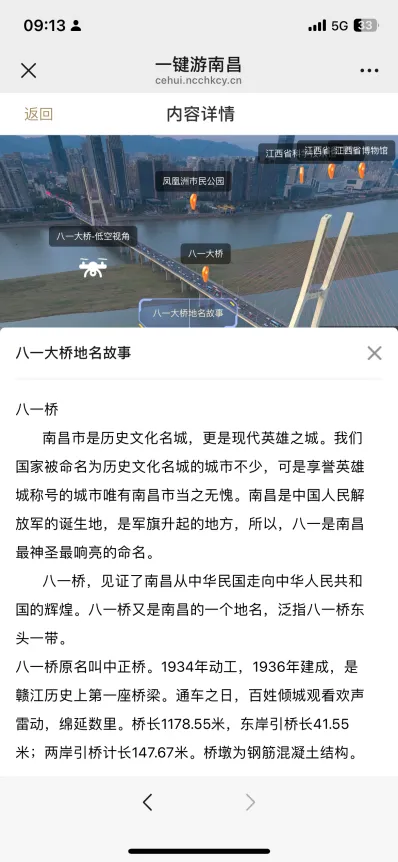 平台“地名故事”模块深入挖掘南昌文化内涵,详细收录滕王阁、八一大桥、杏花楼、百花洲、绳金塔、豫章书院等地的历史文化背景,让游客在欣赏美景的同时,深入了解南昌深厚的文化积淀。
