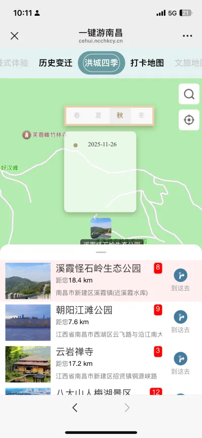 平台“洪城四季”模块目前已完成16处南昌秋季特色景点的720全景采集工作。梅岭的满山红叶、鱼尾洲湿地公园的金色芦苇等秋景一览无余。未来还将陆续补充春、夏、冬季景点全景——春季可赏豫章春色与百花洲繁花,夏季能览赣江天然泳场的清凉景致,冬季可品滕王阁暖阳下的飞檐翘角与城市雪景,实现全年全季节、无死角的沉浸式观赏体验。
