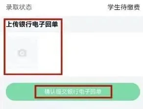 缴费后,拍照上传含学生信息的缴费回执,等待审核通过,显示“已缴费录取”即为成功确认缴费(缴费凭证仅可上传一张)。