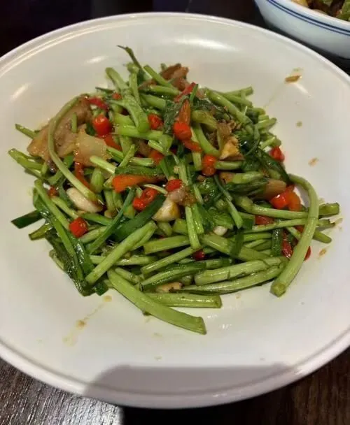 跟腊肉一起爆炒,藜蒿那股子草腥味混着腊肉的油香,一口下去,嚼得嘎吱嘎吱响。日本人吃这个也上瘾,有个老头跟我说,这玩意儿在日本吃不到,每次来南昌必点。15块钱一盘,他一个人能吃两盘,配着米饭,吃得满头冒汗。