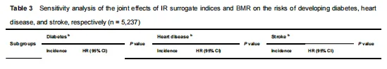 表 2.胰岛素抵抗替代指标与基础代谢率对 CMM 风险的联合影响
