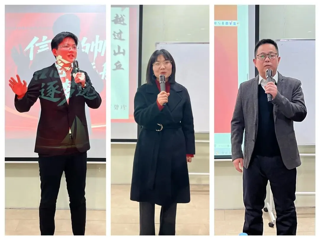 演讲分享环节,五班三位成员带来真挚动人的创业故事:万碧珍《越过山丘向光而行》讲述在困境中坚守的勇气,黄鹏《信念为帆逐梦远航》传递逐梦路上的执着,罗骏《以法护航与光同行》分享法律视角下的创业感悟,一个个真实案例打动了现场每一位观众。