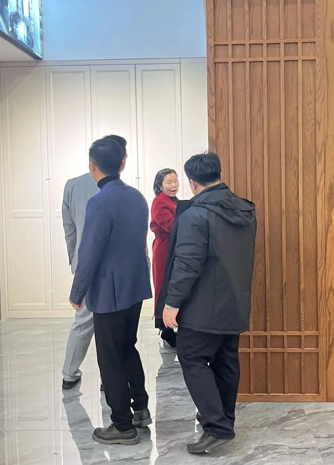 走进黄鹏的《爱瑞德整家定制》展厅,从客厅到卧室的沉浸式样板展示让大家眼前一亮,成员们纷纷询问设计周期、材料环保标准等问题,黄鹏一一耐心解答,还分享了几个因个性化设计赢得客户好评的案例。
