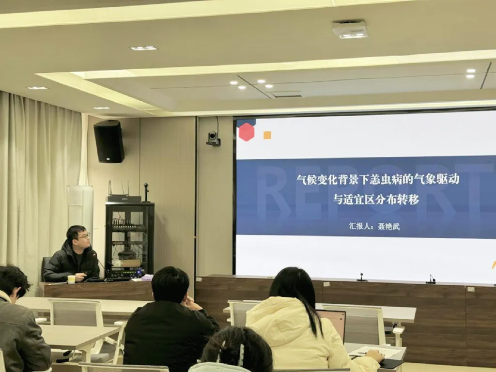 本次活动特邀公共卫生学院2023级博士研究生、国家奖学金获得者聂艳武同学作题为《气候变化背景下恙虫病的气象驱动与适宜区分布转移》的分享,重点交流其目前的研究方向和内容。聂艳武主要分享三个研究内容:一是介绍气候变化背景及其对传染病的影响;二是基于分布滞后非线性模型介绍气象因素对恙虫病的影响,并探究极端气象因素与气象间交互作用对恙虫病的影响;三是介绍未来不同SPP情景下江西省恙虫病适宜区分布转移。他深入剖析了自己在科研项目中的思路与方法,从课题的选择、研究的开展到成果的呈现,毫无保留地传授经验。同时,他还强调了创新思维在科研中的重要性,鼓励同学们敢于突破传统,追求卓越,为同学们在科研道路上点亮了一盏明灯。