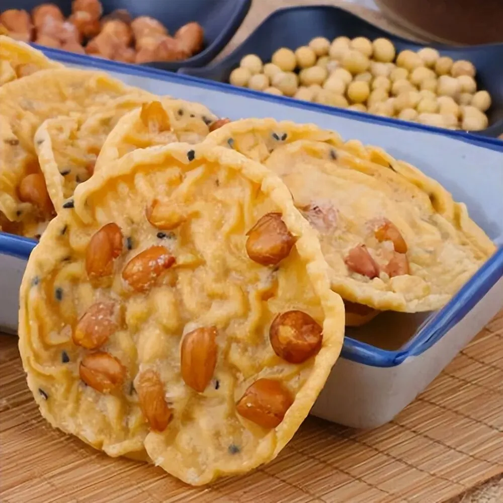 月亮巴是赣州十八县市集上常见的小吃。它是用米浆油炸而成的圆形薄饼,因形似满月而得名。老辈人制作时讲究“三沉三浮”,将调好的米浆舀入铁勺,点缀花生或黄豆,浸入茶油中反复炸制,直到边缘卷曲成金黄波浪。其外壳酥脆,内里柔韧,带着浓郁的米香和花生或黄豆的香脆。