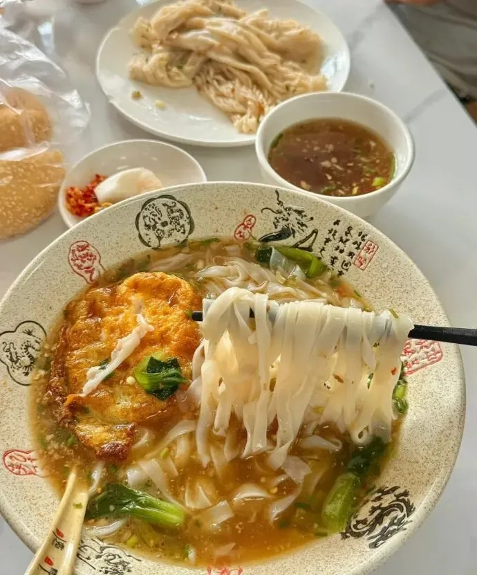 烫皮丝也是赣州的经典小吃之一。它以晚米磨浆蒸制而成,老师傅将凝固的米皮切成细丝,浇上骨头熬制的高汤,撒上葱花、酸菜和辣椒末,便成了一碗美味的“客家版拉面”。在上犹县的农家,还保留着传统的“旋蒸法”,做出的烫皮丝带着淡淡的竹香。
