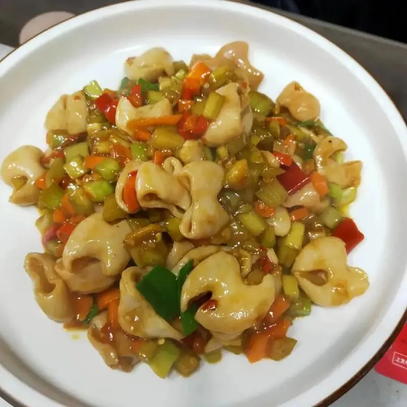 醋果子炒大肠则是赣州最具特色的小吃之一。这道菜将本地芥菜腌制的醋果子与卤制七分熟的大肠猛火爆炒,临出锅前淋一勺赣州特产糯米醋。醋果子脆嫩酸爽,大肠油亮有嚼劲,两者搭配在一起,酸辣开胃,十分下饭。