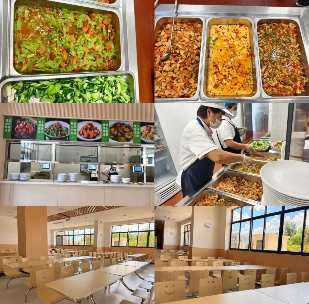 宿舍采用4-6人间上床下桌设计,配备独立卫生间、24小时热水、空调及全自动洗衣机,大容量衣柜满足储物需求,打造如家般的居住体验。校内食堂每日供应营养三餐,菜品丰富多样、健康卫生,不限量供应,为备考学子补充充足能量。