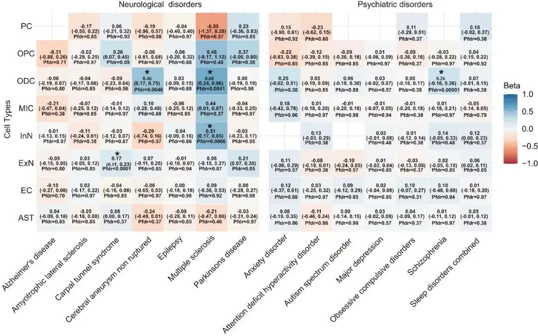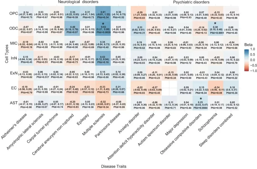 - IBD:寡突胶质细胞分层变异与多发性硬化症、精神分裂症风险升高相关,星形胶质细胞分层变异与强迫症风险升高相关;