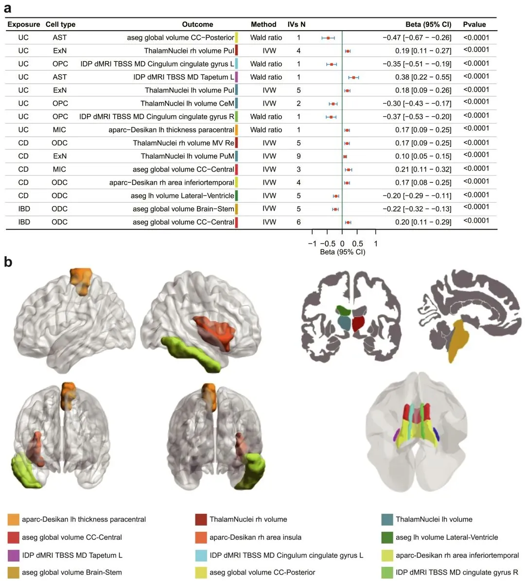 3.IBD、UC和CD对脑部IDPs的细胞分层潜在因果效应