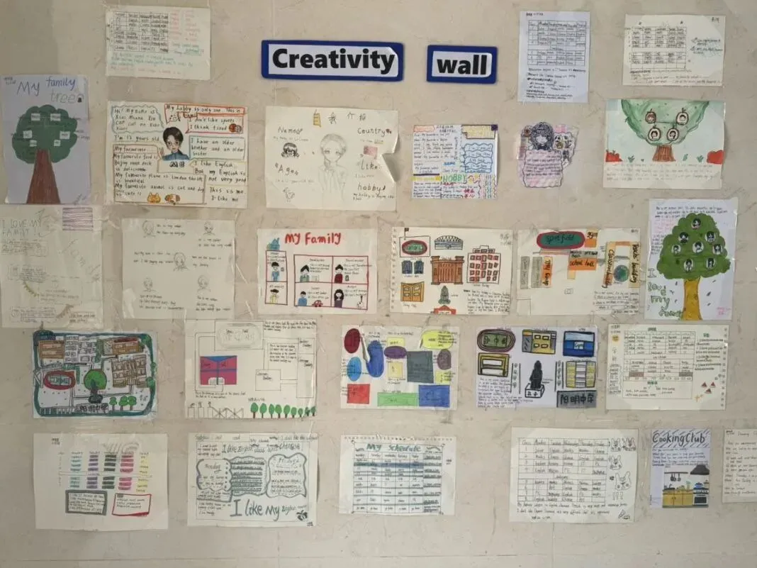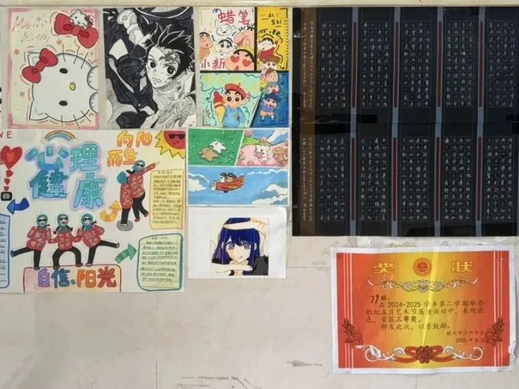 走进教室,首先映入眼帘的是一面面主题突出的文化墙。各班围绕主线内容精心设计版面,通过文字、图片、书画作品等形式,将价值引领与班级实际相结合,让抽象的理念变得可感、可见。文化墙不再只是装饰,而是同学们每日抬头可见、潜移默化接受熏陶的精神坐标。