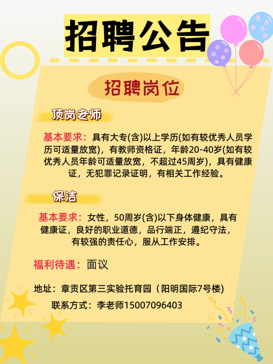 赣州章贡区水东第二、三保育院2026年春季招聘公告