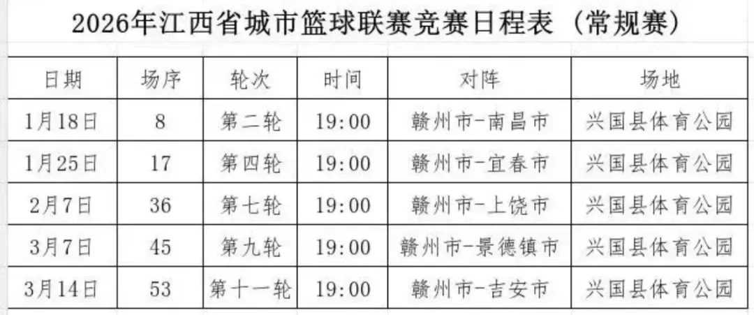 2026江西省城市篮球联赛1月18日进行了第二轮的比赛,赣州市队主场对阵南昌市队,一起来欣赏两队的精彩得分集锦:接下来,赣州市分别将在1月25日第四轮主场对阵宜春市队;2月7日第七轮主场对阵上饶市队;3月7日第九轮主场对阵景德镇市队;3月14日第十一轮主场对阵吉安市队。让我们一起为赣州市队加油!一支队一座城,赣B赣州队加油“赣”!注:视频来源抖音用户上传,在此表示感谢!如🈶侵权请联系删除。大余辉达体育,是目前大余县较为专业的篮球培训基地之一,常年招收小学、初中、高中等各年龄段学员。办学以来,为大余县及周边县市的各学校输送了大量的优秀篮球学员。同时,辉达体育常年带领学员参加全省、全市各种篮球比赛,通过比赛锻炼身体,取得好成绩之后,依靠自身努力取得国家承认的高等级运动员证,让您的孩子在高考时轻松赢得晋级重点高等名校的资格!为将来的学习与生活打开通畅的之路!