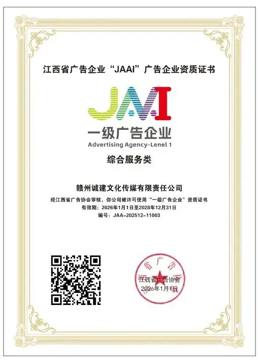 双奖赋能!赣州诚建文化获评省级最高广告资质,彰显集团转型实效
